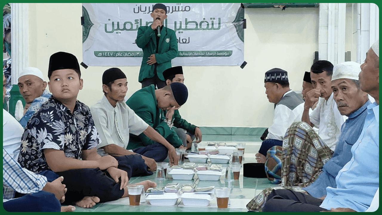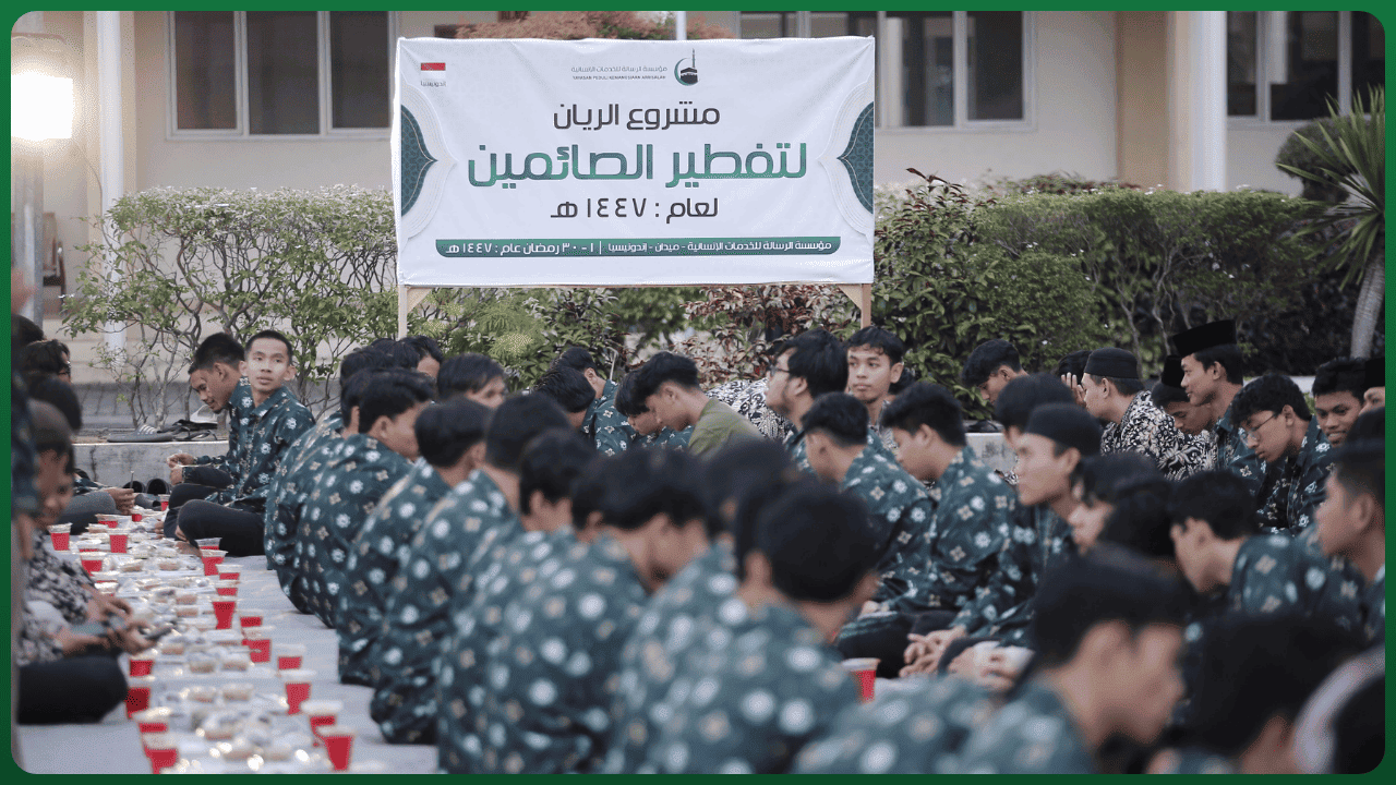 بفضل الله تعالى وتوفيقه، نفّذت مؤسسة الرسالة للخدمات الإنسانية مشروعها الرمضاني المبارك “مشروع الريّان لتفطير الصائمين” لعام 1447 هـ، والذي يُعدّ من أبرز المشاريع الخيرية التي تقيمها المؤسسة سنويًا خلال شهر رمضان المبارك، بهدف خدمة الصائمين ونشر معاني التكافل والتراحم بين أفراد المجتمع.