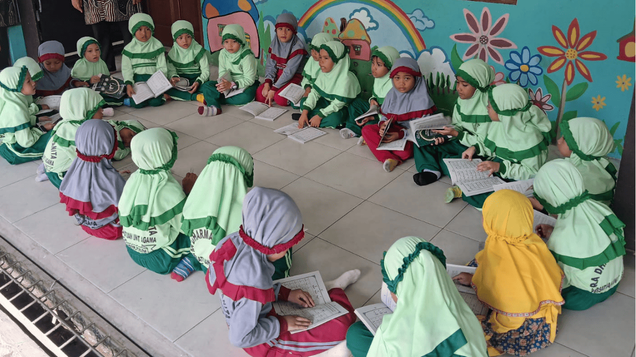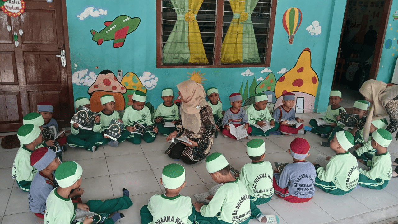 الحمد لله الذي بنعمته تتم الصالحات، تم تنفيذ برنامج توزيع المصاحف التعليمية (كتاب إقرأ) من قبل مؤسسة الرسالة الخيرية الإسلامية إلى مدرسة روضة الأطفال دارما ونيتا برسatuan ديباك الواقعة في منطقة لوبوك باكام، محافظة دلي سردانغ، شمال سومطرة. وقد نُفِّذ هذا البرنامج في إطار مشروع الوقف التعليمي الذي تم تصميمه خصيصًا لدعم تحسين جودة تعليم القرآن الكريم للأطفال في مختلف المناطق.