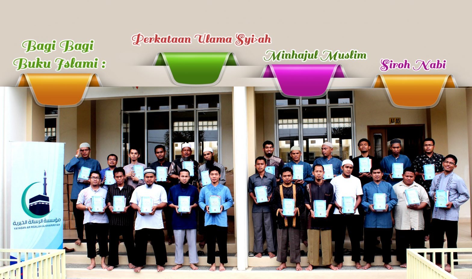 Program Pencerdasan Ummat Alhamdulillah Atas berkat Rahmat dan Taufik ALLAH Subahanahu Wata’ala, Yayasan Arrisalah Alkhairiyah telah menyalurkan buku ” العلماء شيعة يقولون ” Perkataan Ulama Syi’ah ” Sebanyak 7000 Eksamplar, semoga dengan adanya buku pegangan ini dapat menambah wawasan kita tentang sesatnya agama SYI’AH itu,, dan membentengi keluarga kita darinya.