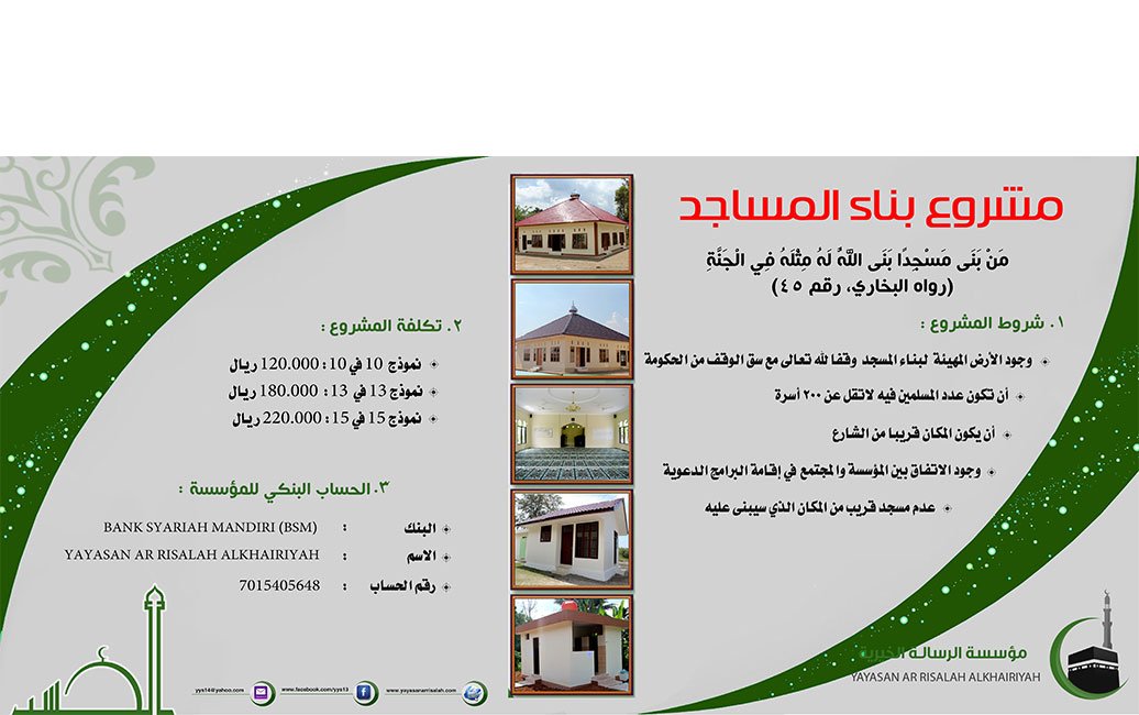 Pembangunan Mesjid Program ini merupakan pembangunan mesjid dan rumah imam di daerah yang membutuhkan, kemudian menempatkan da’i untuk mengajarkan masyarakat ilmu agama dan kegiatan dakwah melalui sarana mesjid yang dibangun tersebut,dan program ini berada dibawah pengawasan Yayasan Ar-risalah Al- Khairiyah. Syarat Dan Ketentuan : Lokasi yang diusulkan berstatus waqaf, Pemukiman muslim minimal 200kk Lokasi yang […]