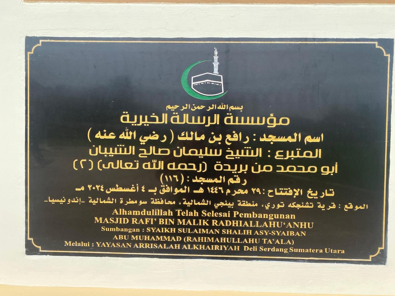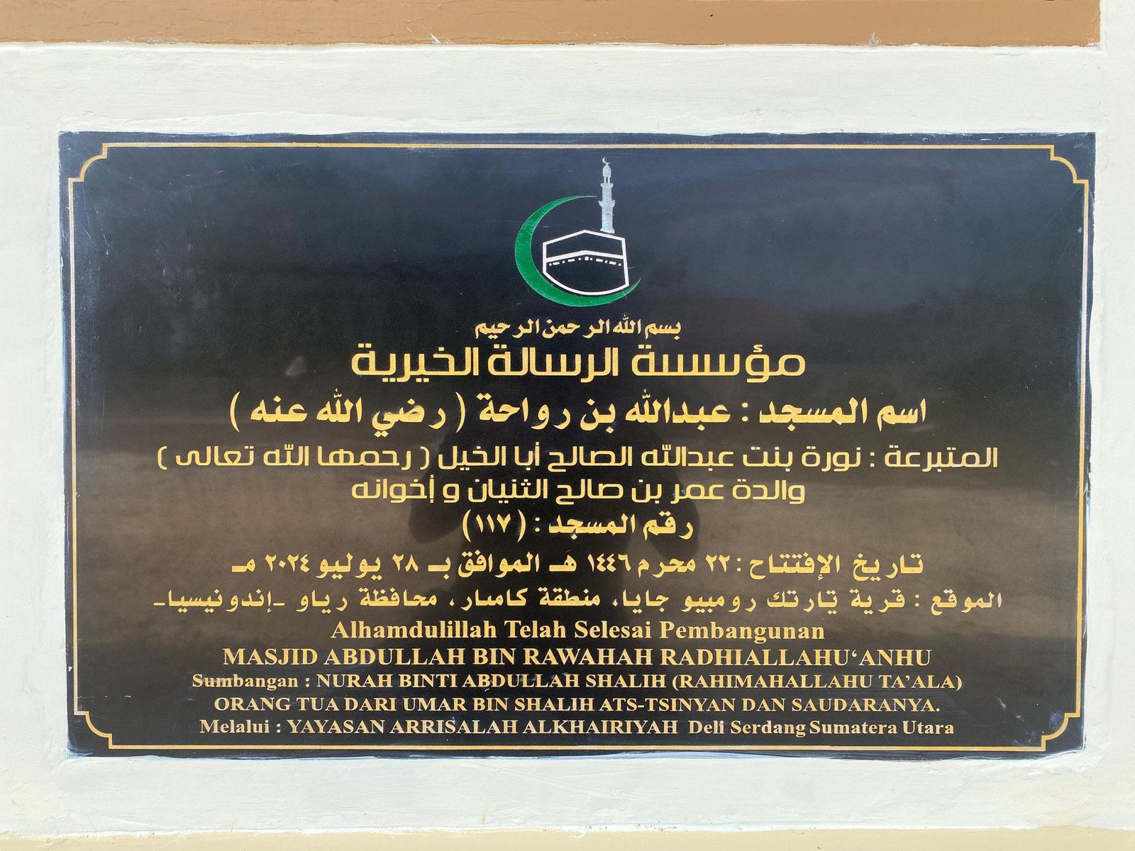 Peresmian Masjid ke – 117 Masjid Abdullah Bin Rawahah radhiallahu ‘anhu, Desa Taratak, Kec. Rumbio Jaya, Kab. Kampar, RIAU.