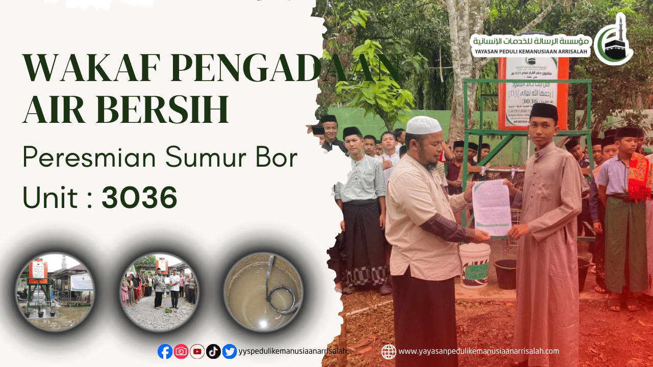 Alhamdulillah, program wakaf air bersih kembali menghadirkan manfaat melalui Sumur Wakaf No. 3045 di Dusun VII, Desa Stungkit, Kecamatan Wampu, Kabupaten Langkat. Pembangunan sumur ini bertujuan untuk membantu masyarakat mendapatkan akses air bersih yang lebih dekat dan aman. Selama ini sebagian warga harus mengambil air dari sumber yang terbatas sehingga kebutuhan air tidak selalu terpenuhi. […]