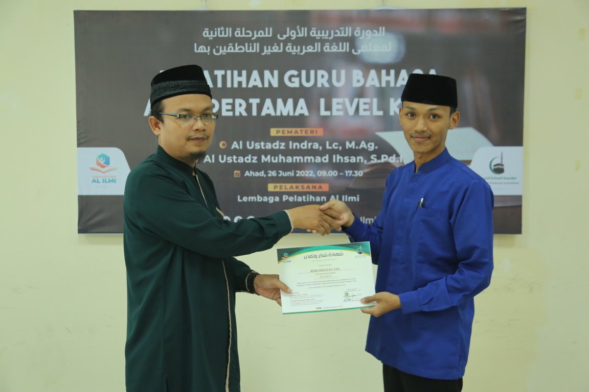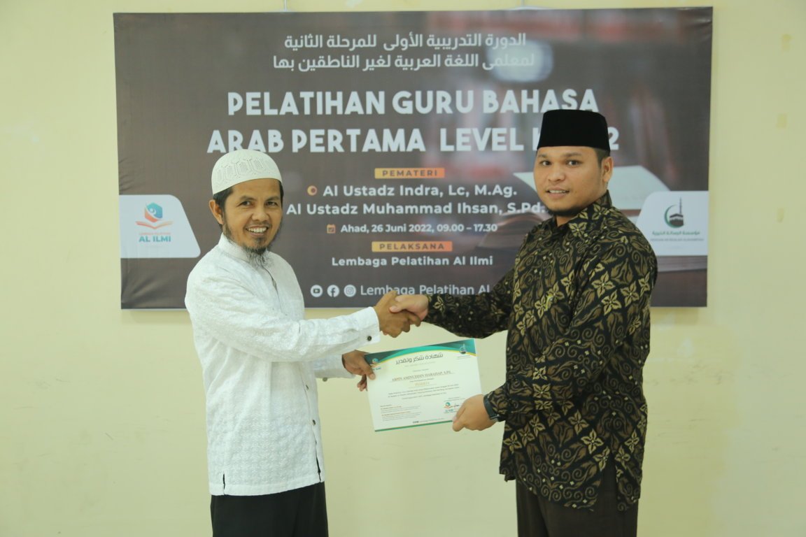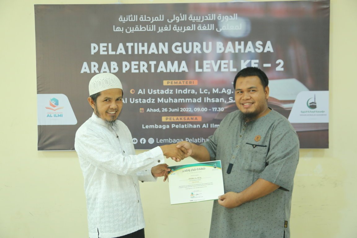 Divisi Pelatihan Yayasan Ar Risalah Alkhairiyah Mengadakan Pelatihan Guru Bahasa Arab Level Ke 2 Gelombang Ke 1 Pada Tanggal 26 Dzulqo’dah 1443 H / 26 Juni 2022, Yang Bertindak Sebagai Pemateri Adalah Ustadza Indra, Lc., M.Ag. dan Ustadz Muhammad Ihsan, S.Pd.I. Peserta Yang Mengikuti Pelatihan Berjumlah 23 Orang.
