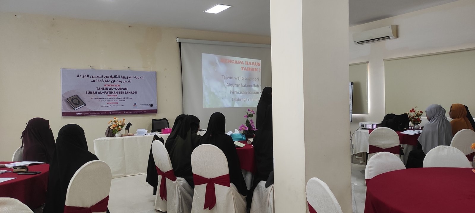 Divisi Pelatihan Yayasan Ar Risalah Alkhairiyah Mengadakan Pelatihan Tahsin Al-Qur’an Surah Al-Fatihah Bersanad Ke- 2 Pada Tanggal 15 Ramadhan 1443 H / 17 April 2022, Yang Bertindak Sebai Pemateri Adalah Ustadzah Khairatun Hisan, M.Sos. Peserta Yang Mengikuti Pelatihan Berjumlah 10 Orang.