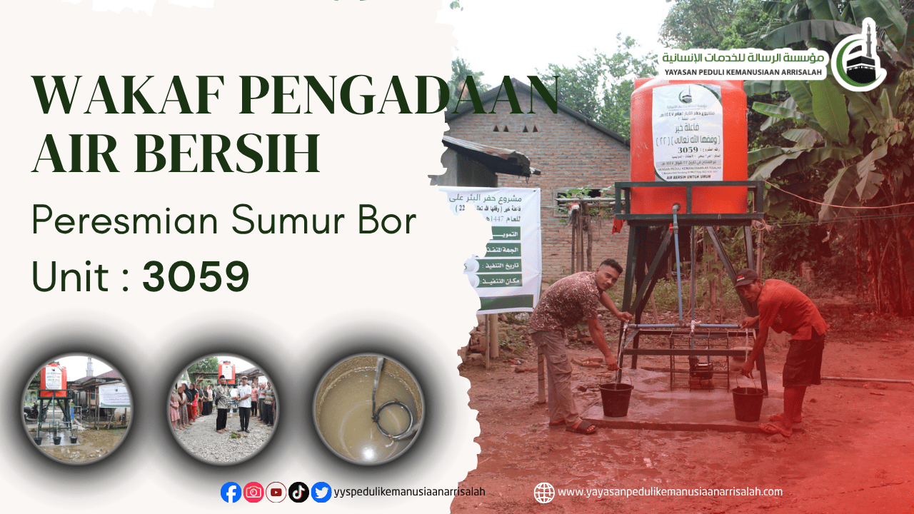 Alhamdulillah, program kemanusiaan kembali memberikan manfaat nyata melalui peresmian Sumur Wakaf No. 3059 yang berlokasi di Lingkungan 3, Kelurahan Bingei, Kecamatan Wampu, Kabupaten Langkat, Sumatera Utara. Program ini merupakan bagian dari komitmen berkelanjutan Yayasan Peduli Kemanusiaan Arrisalah dalam menghadirkan solusi atas kebutuhan dasar masyarakat, khususnya dalam penyediaan air bersih yang layak dan berkelanjutan.