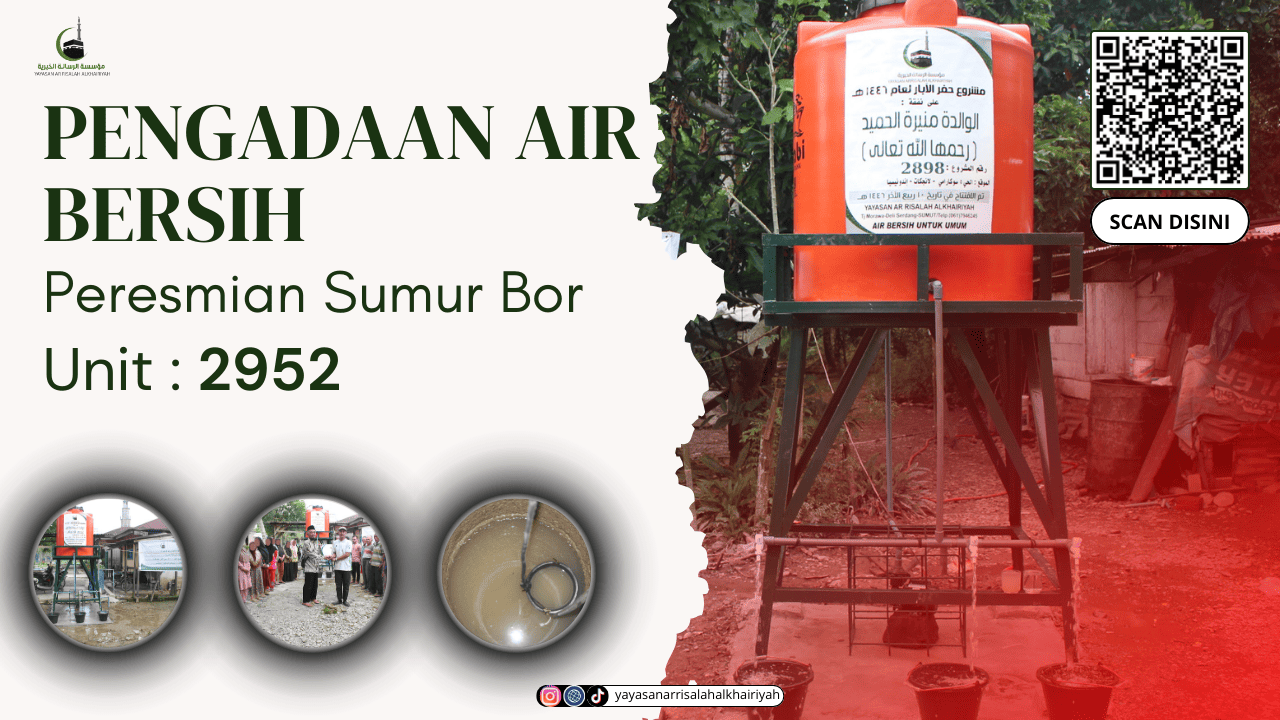 Alhamdulillah, Yayasan Arrisalah Alkhairiyah kembali merealisasikan amanah para donatur melalui peresmian Sumur Air Bersih Unit 2952 yang berlokasi di Dusun 5, Desa Tebing Tanjung Selamat, Kecamatan Padang Tualang, Kabupaten Langkat. Peresmian ini menjadi bagian dari komitmen yayasan dalam menghadirkan solusi nyata bagi masyarakat pelosok yang kesulitan mendapatkan air bersih.