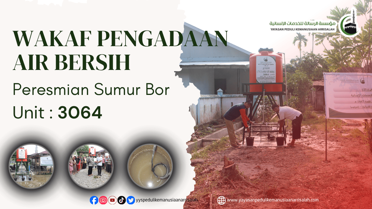 Alhamdulillah, dengan rahmat dan karunia Allah Subhanahu wa Ta’ala, Yayasan Peduli Kemanusiaan Arrisalah kembali merealisasikan program kemanusiaannya melalui peresmian Sumur Wakaf No. 3064 yang berlokasi di Dusun 4, Desa Gohor Lama, Kecamatan Wampu, Kabupaten Langkat, Sumatera Utara. Program ini merupakan bagian dari komitmen yayasan dalam menghadirkan solusi nyata atas kebutuhan dasar masyarakat, khususnya dalam penyediaan air bersih yang layak dan berkelanjutan.